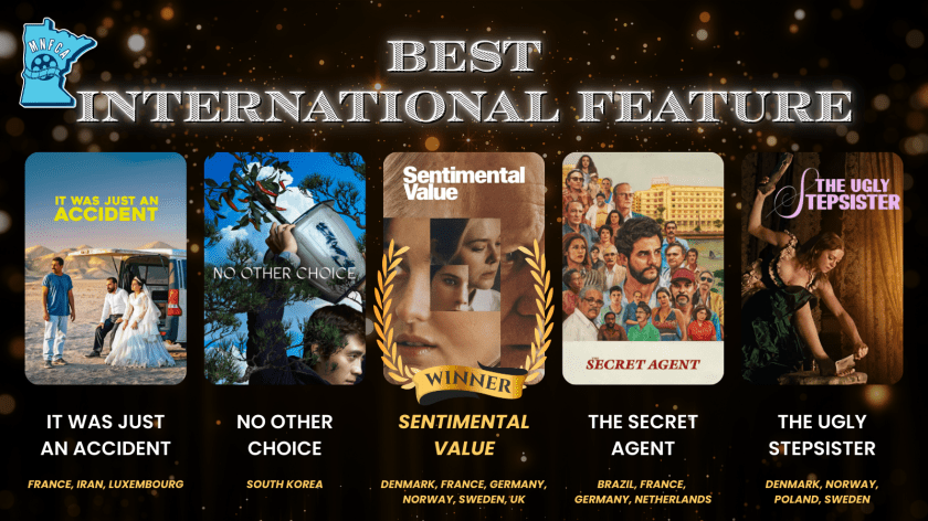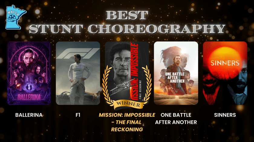 The Minnesota Film Critics Association (MNFCA) is proud to announce the winners of their 2025 annual Film Awards. This year, One Battle After Another claimed the top honor of Best Picture and received a total of four awards, the most of any nominated film.